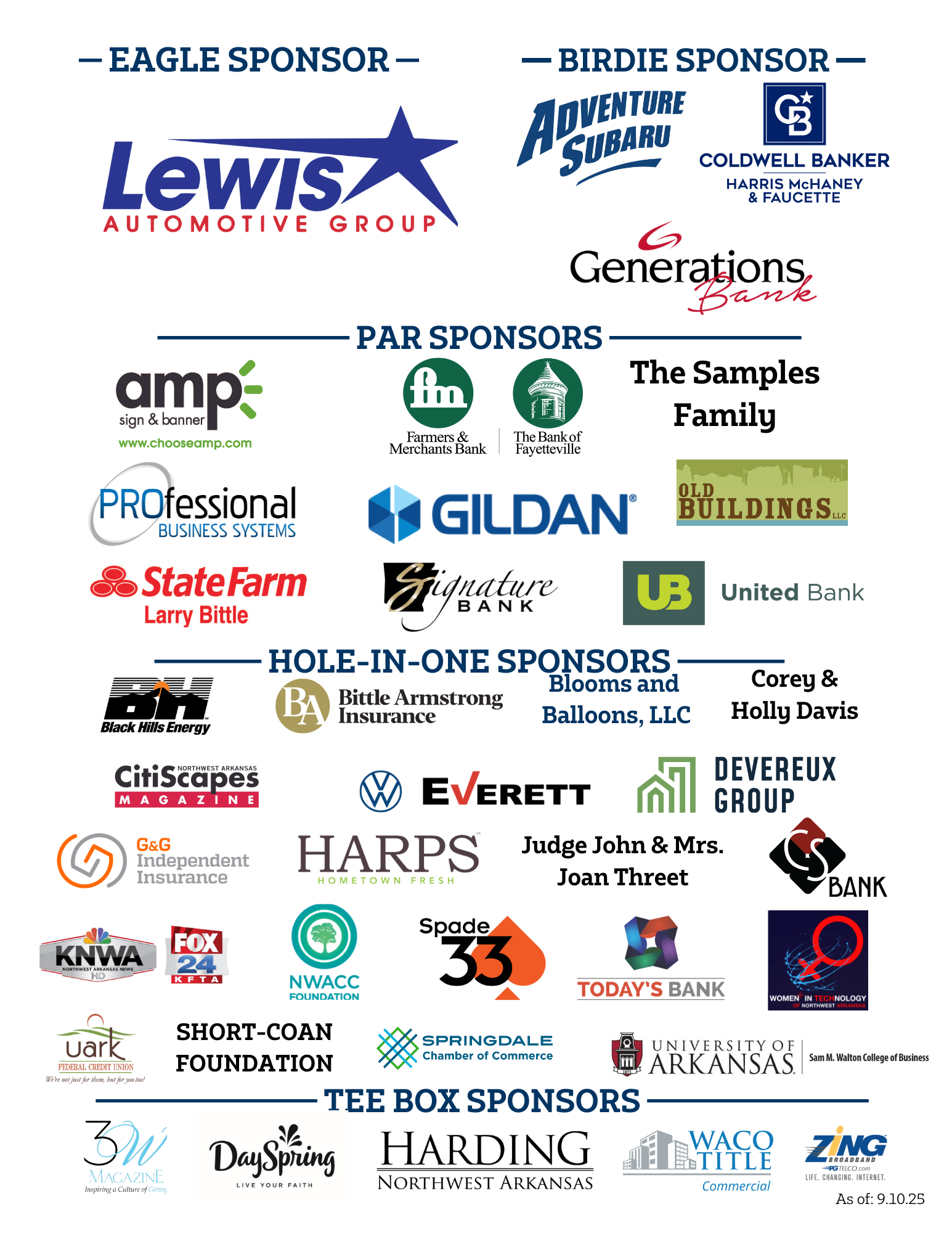 - Register a team of four players and sponsor a family team for only $160.