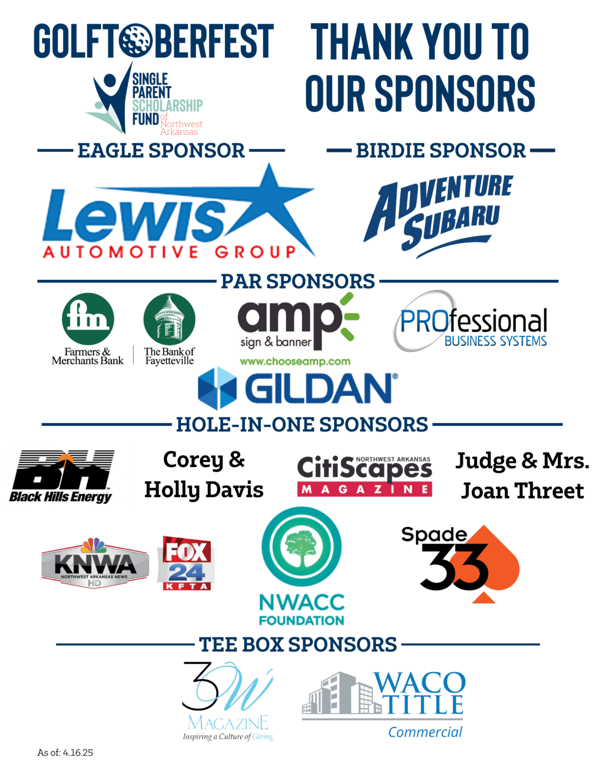 - Register a team of four players and sponsor a family team for only $160.